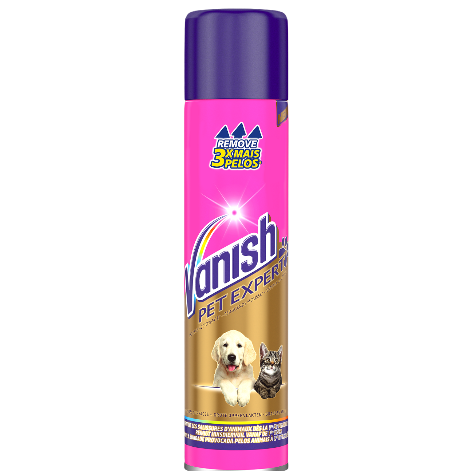 Vanish Pet Expert espuma de limpeza foi desenvolvido para remover sujidade e pelos de tapetes, carpetes e estofos. Além disso, tem um efeito refrescante e amaciador.